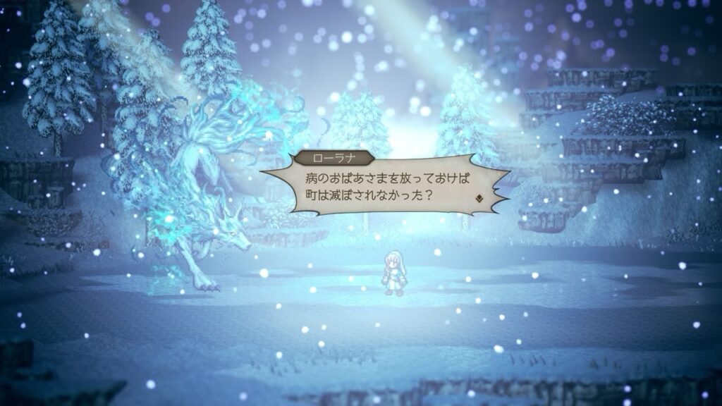 ④ローラナが「罰」を受けそうになったところで主人公達が助けに入り、ボス:蒼翠の大狼戦に突入