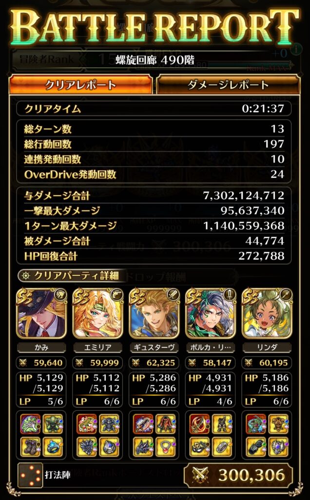 螺旋490階のバトルレポート(一部省略)になります。
