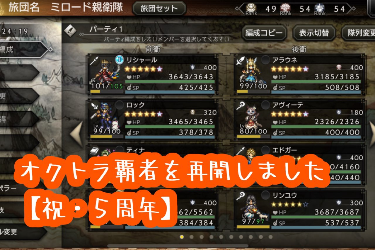最近ようやく落ち着いてゲームをプレイする余裕ができたため、長く放置していたオクトラ大陸の覇者をFF6コラボあたりからちびちびと再開しています。